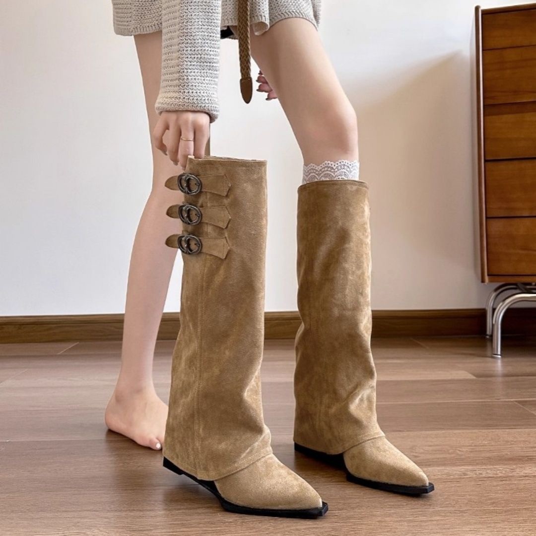 【預購】洋氣尖頭內增高顯瘦褲管靴