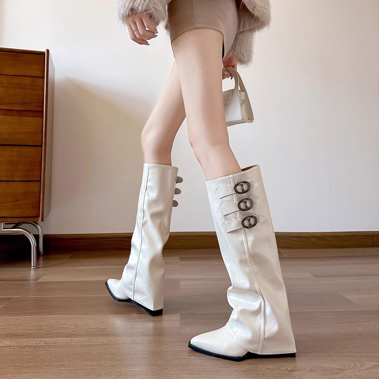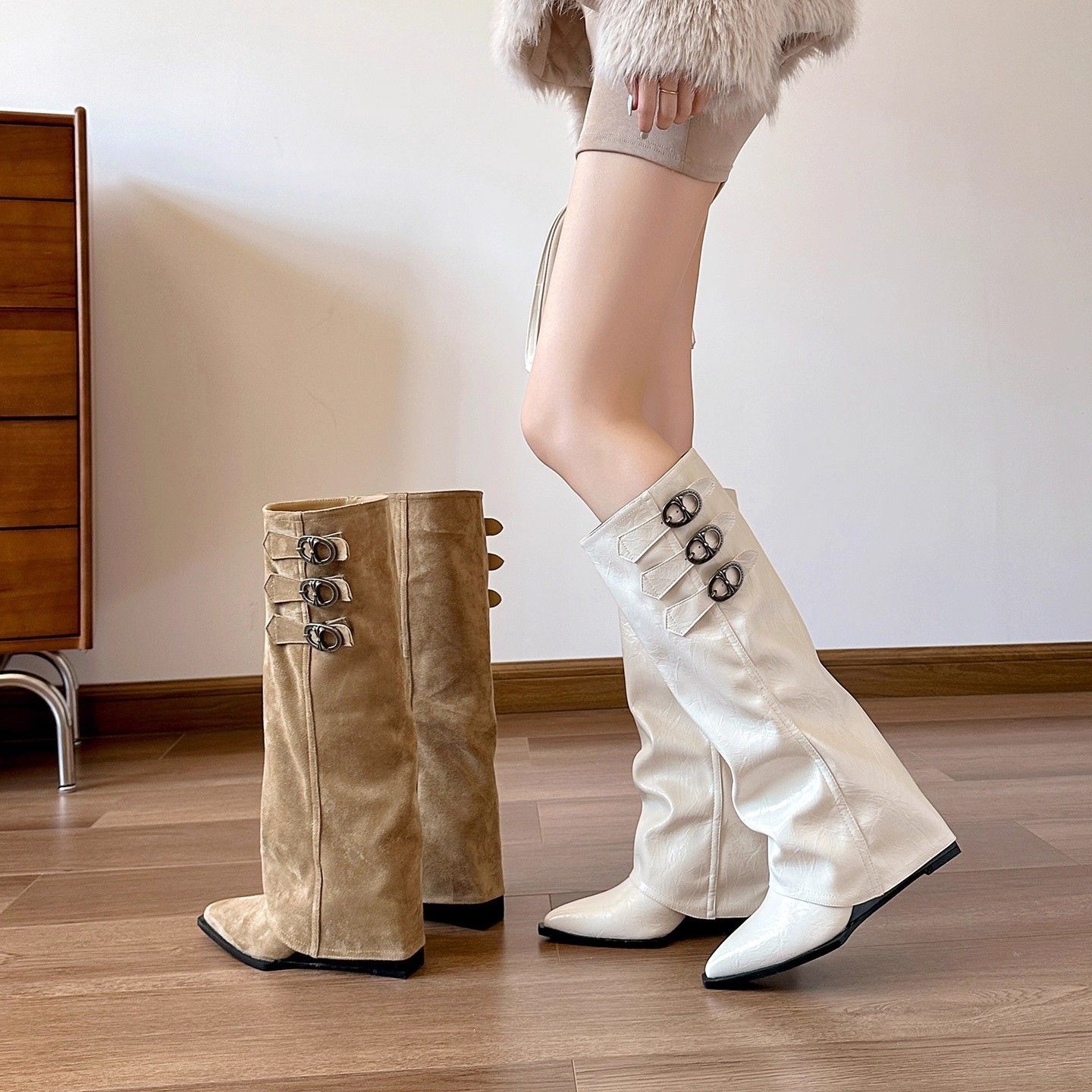 洋氣尖頭內增高顯瘦褲管靴
