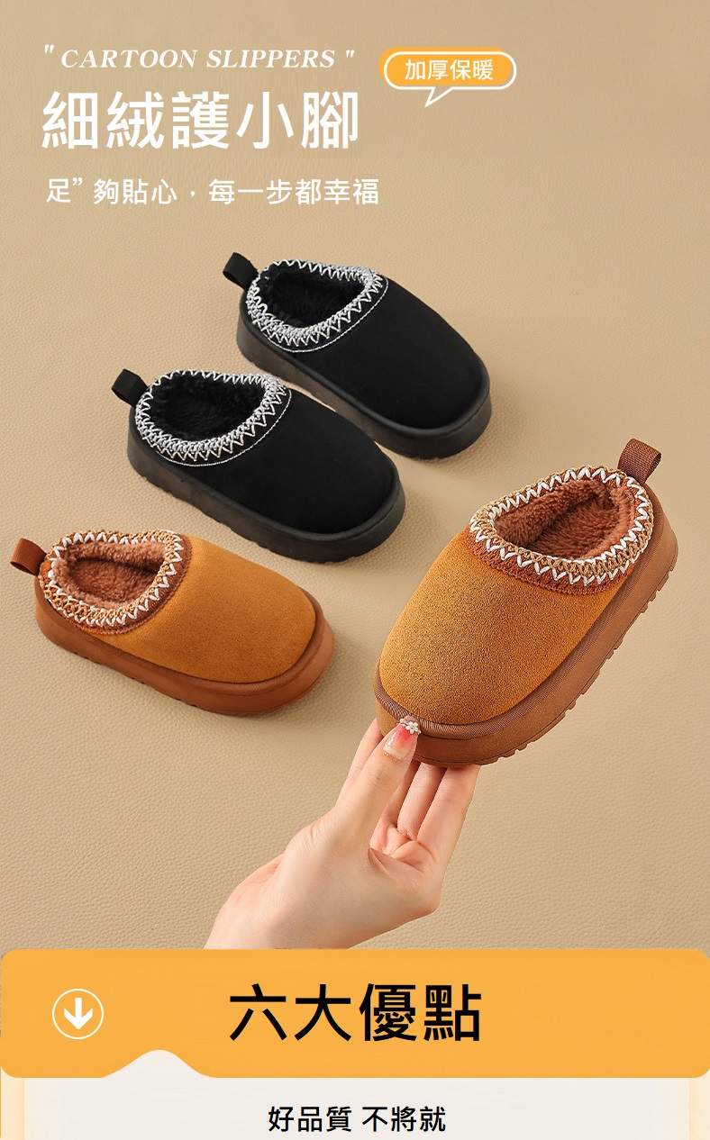 【預購】民族風兒童厚棉半拖(3色)低調民族風絨毛,小男生小女生都可以陪媽媽一起可愛過冬!!!厚腳腳或者腳板寬的寶貝建議拿大一碼比較舒適唷!