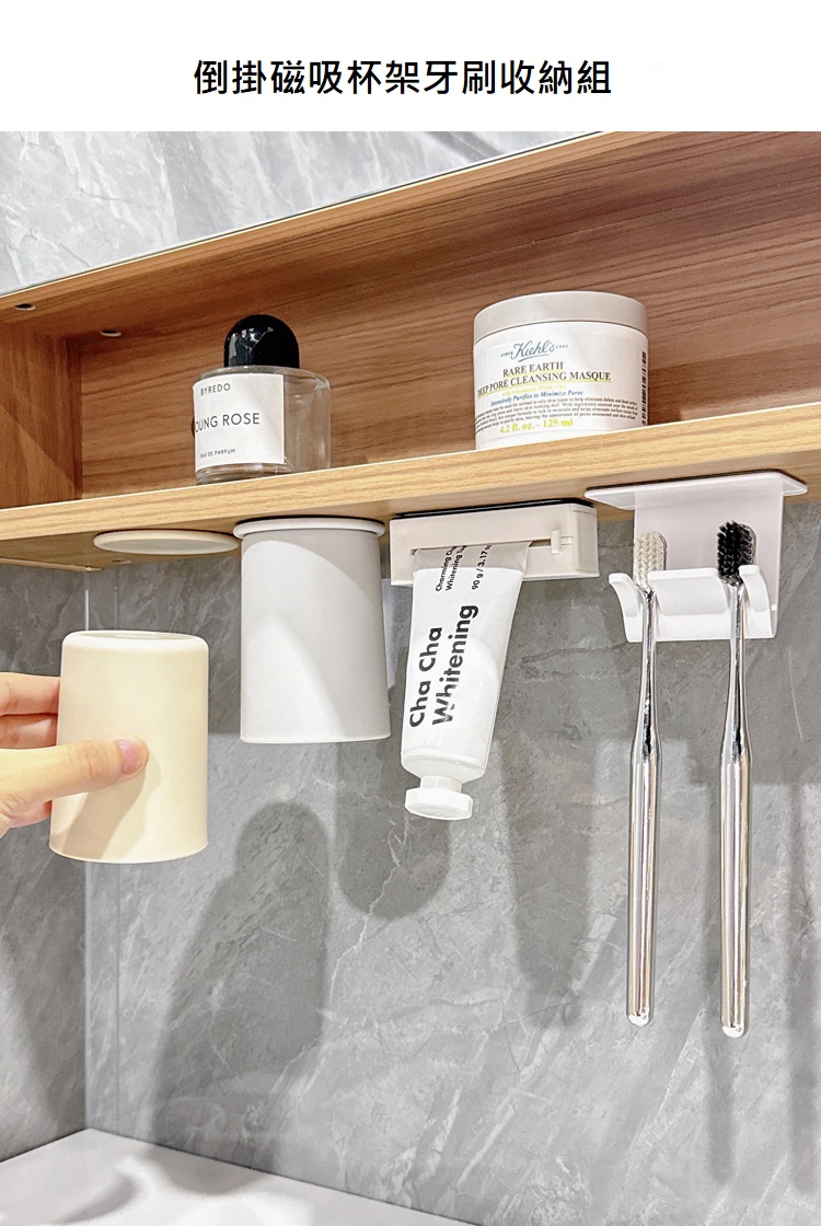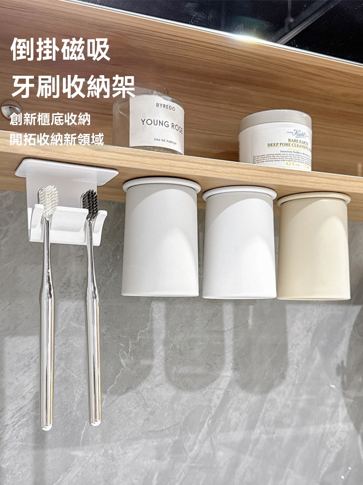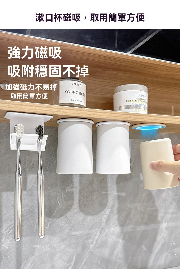 【預購】壁掛式免打孔磁吸漱口杯牙刷掛架