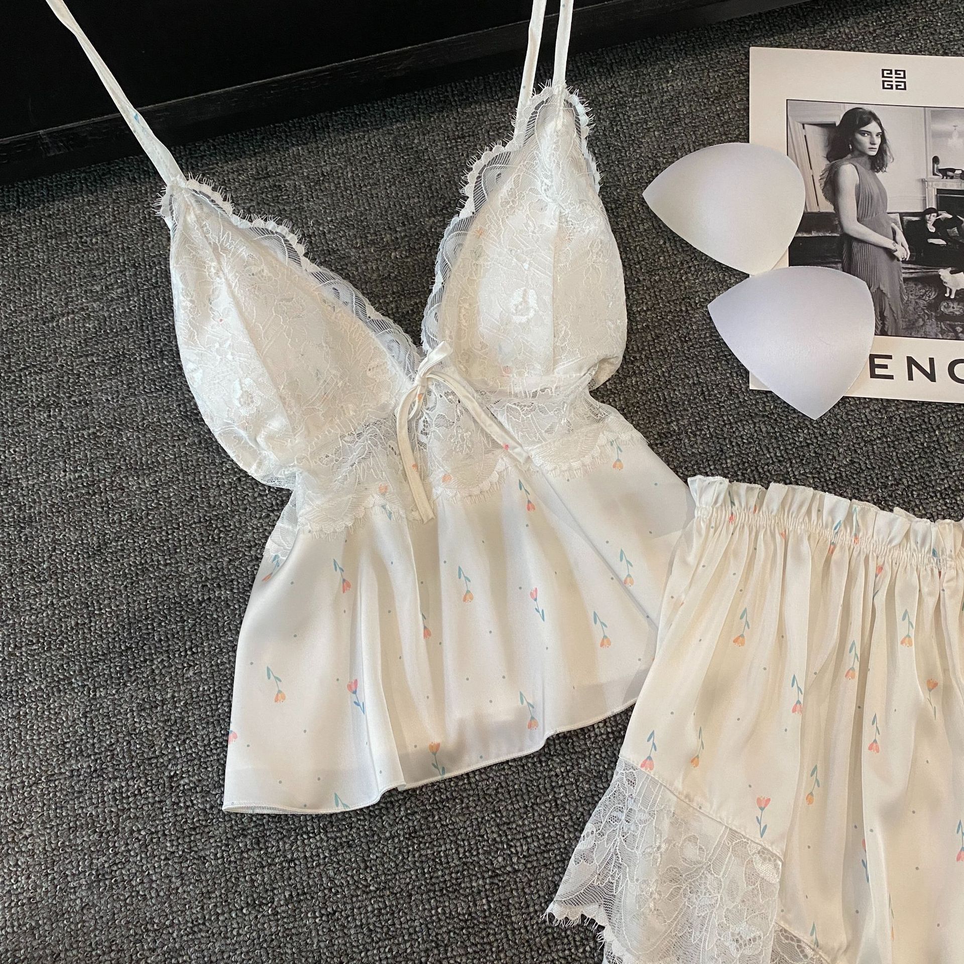 【預購】夏季少女纯欲吊带短裤家居服-膚色鬱金香