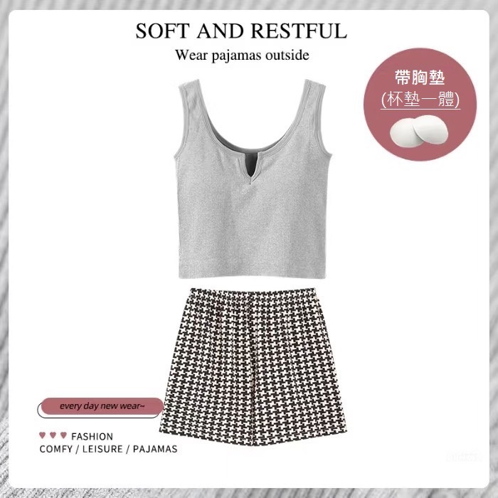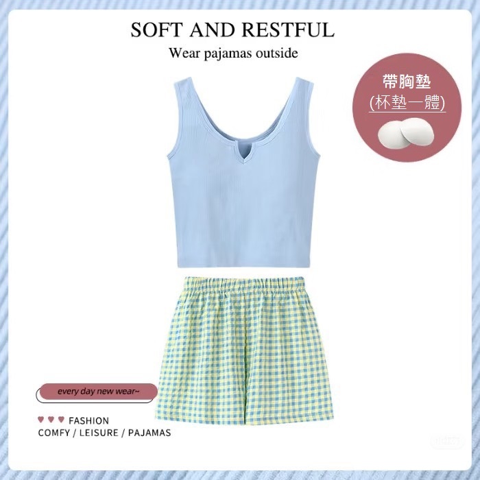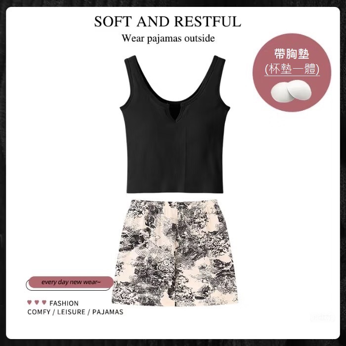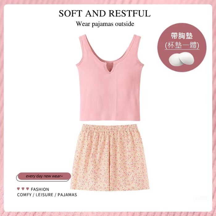 【預購】小碎花帶胸墊無袖短褲家居服(5色)