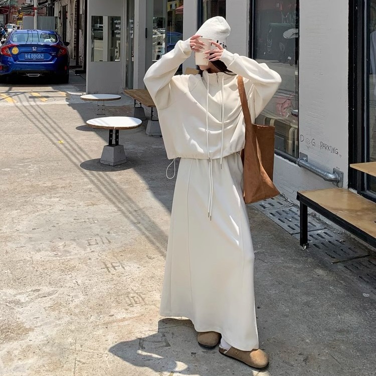 寬鬆休閒衛衣高腰慵懶半身裙-米白S