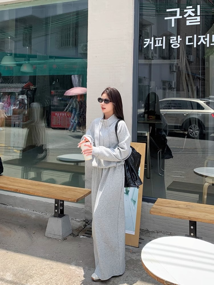 寬鬆休閒衛衣高腰慵懶半身裙-淺灰L