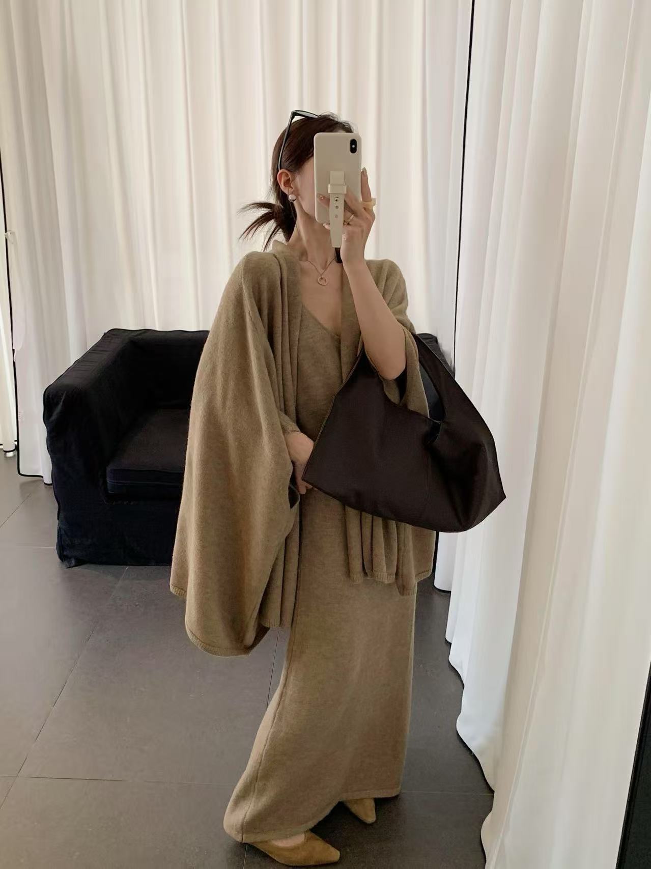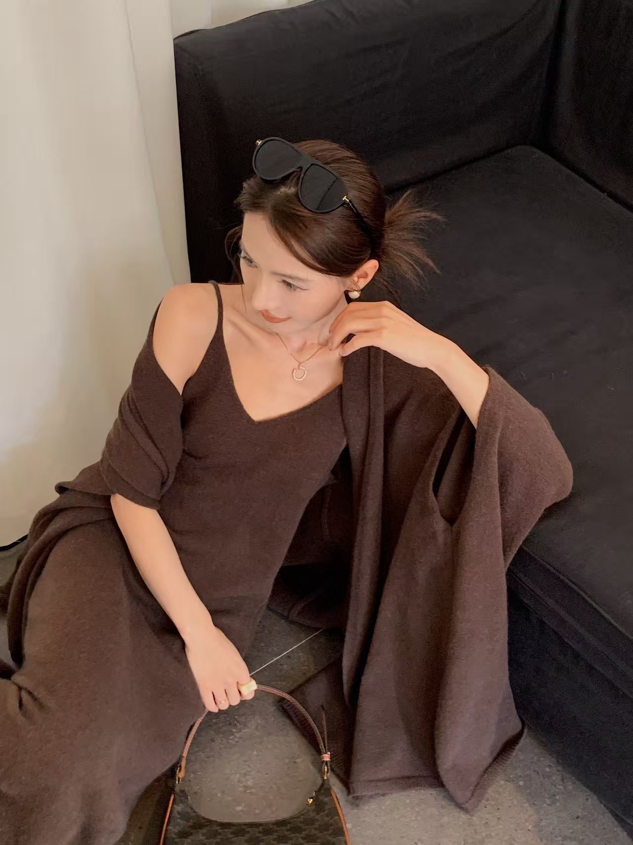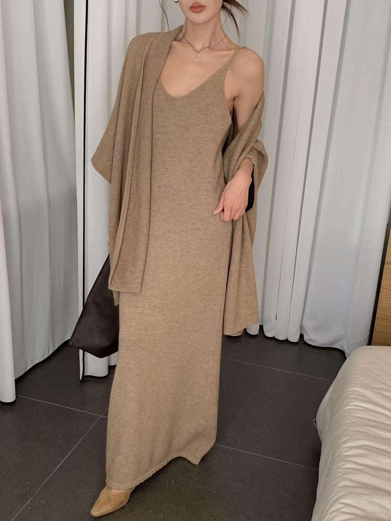 【預購】法式慵懶風針織披肩吊帶裙兩件套