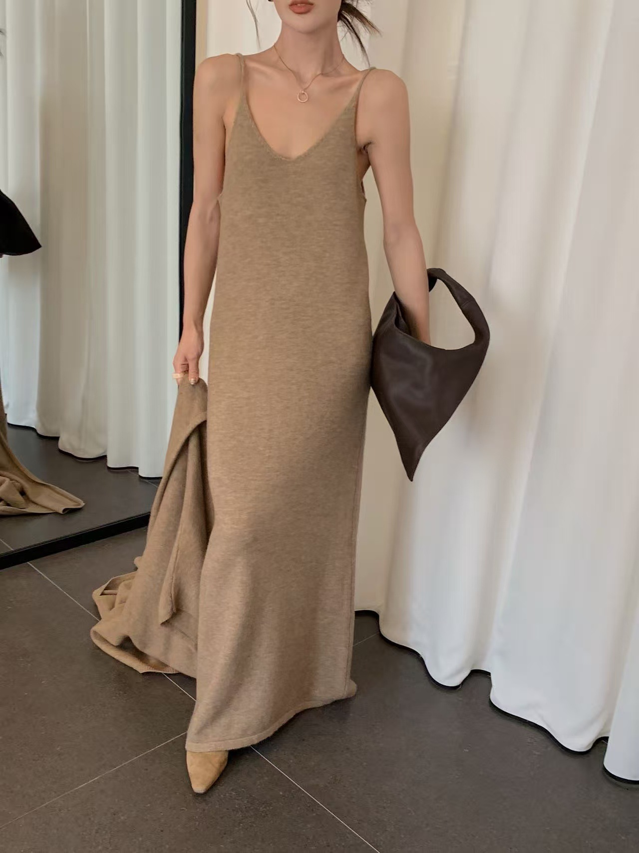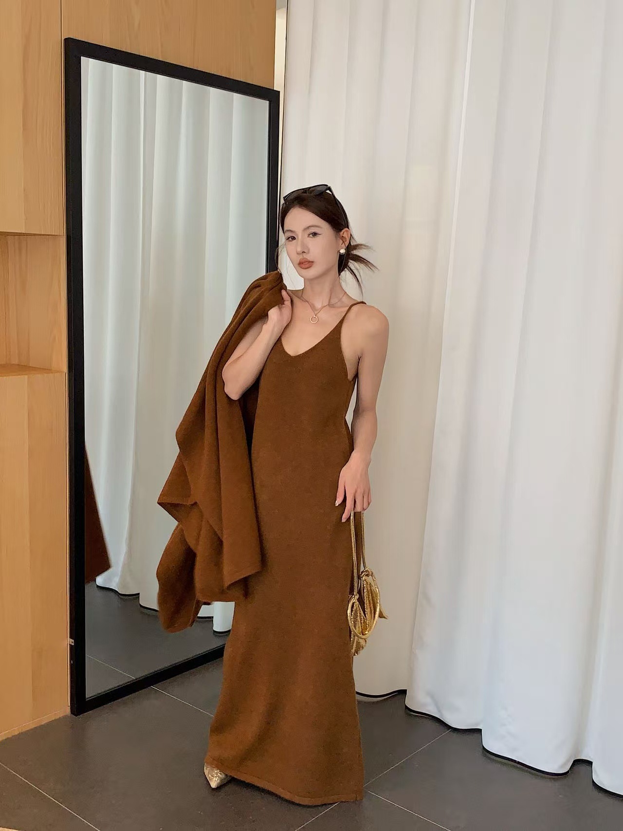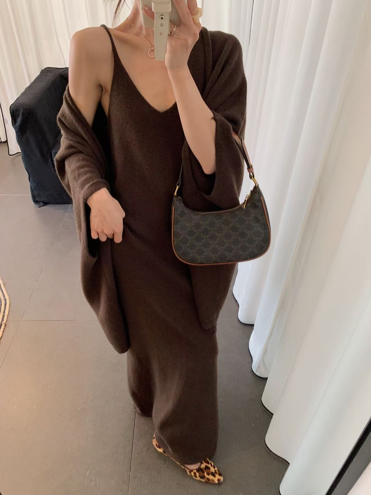 【預購】法式慵懶風針織披肩吊帶裙兩件套