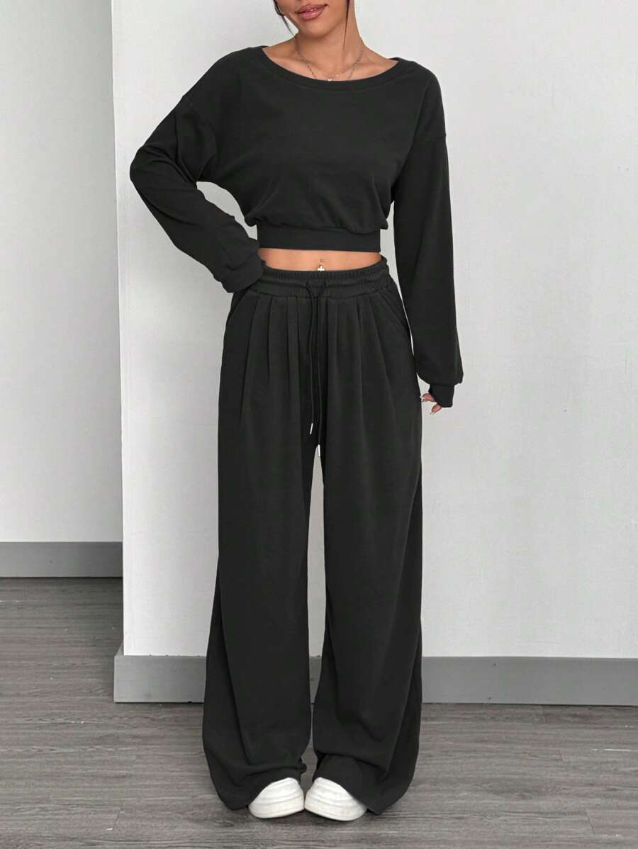 【預購】時尚短版上衣修身休閒長褲套裝(3色)小提醒 : 本商品為【預購】跨境商品2-4週到貨,恕不提供退換貨服務-..