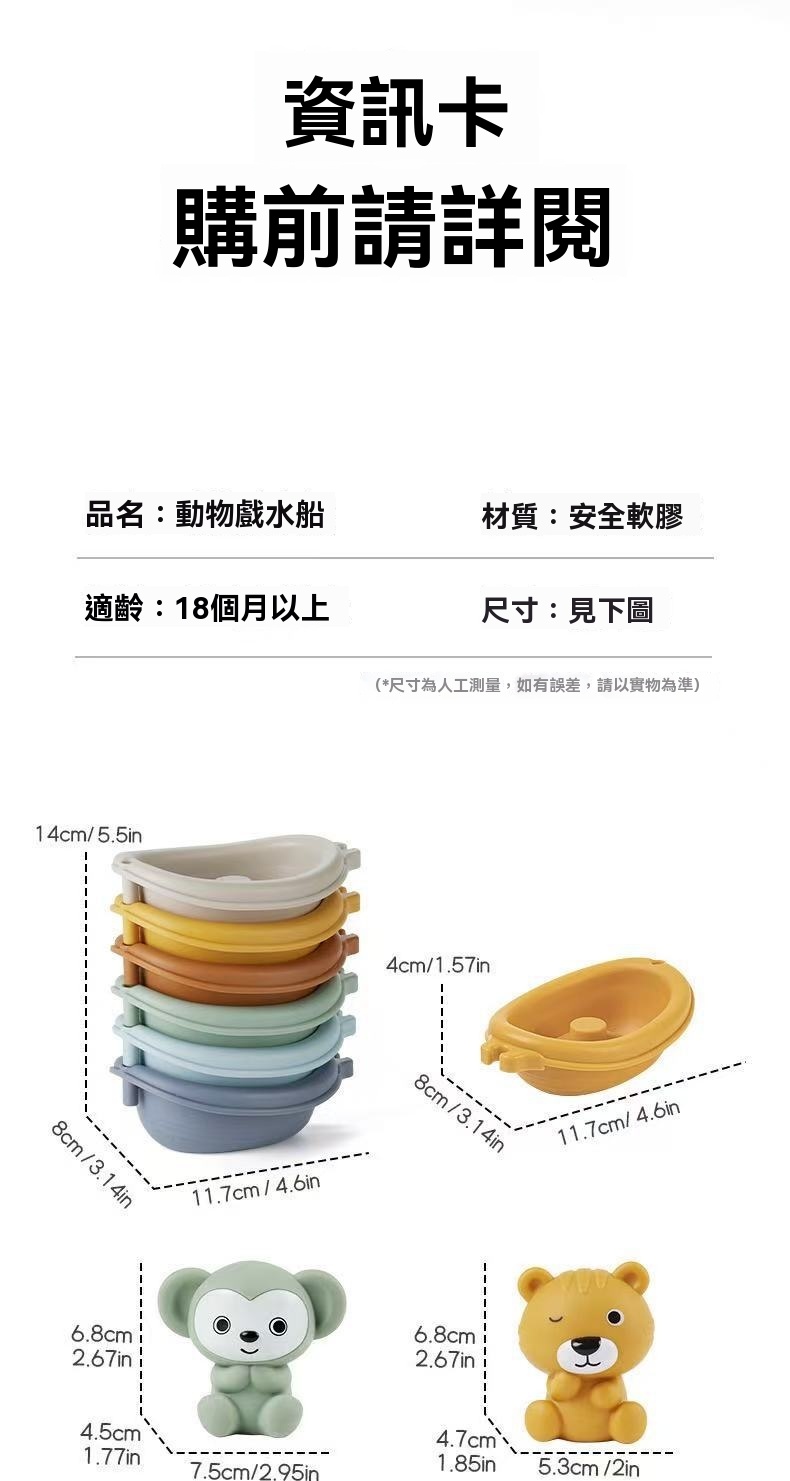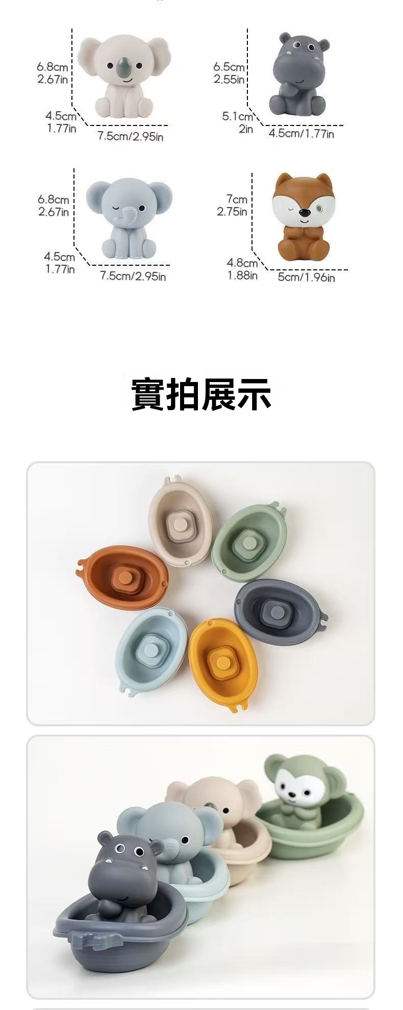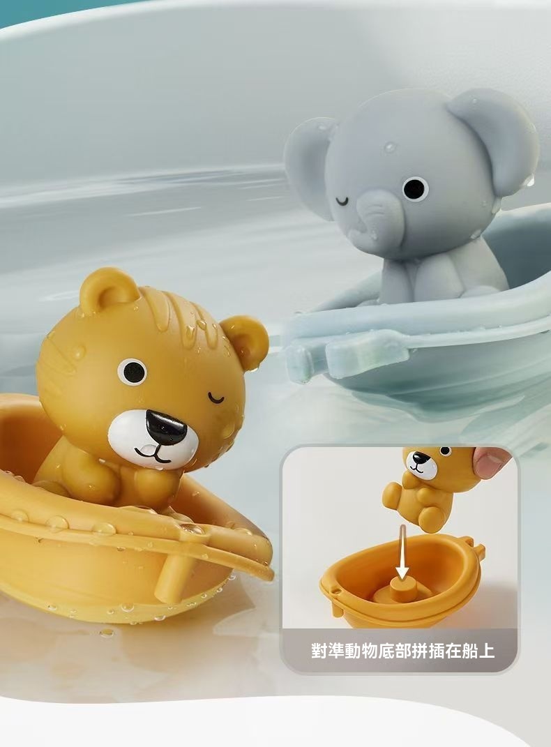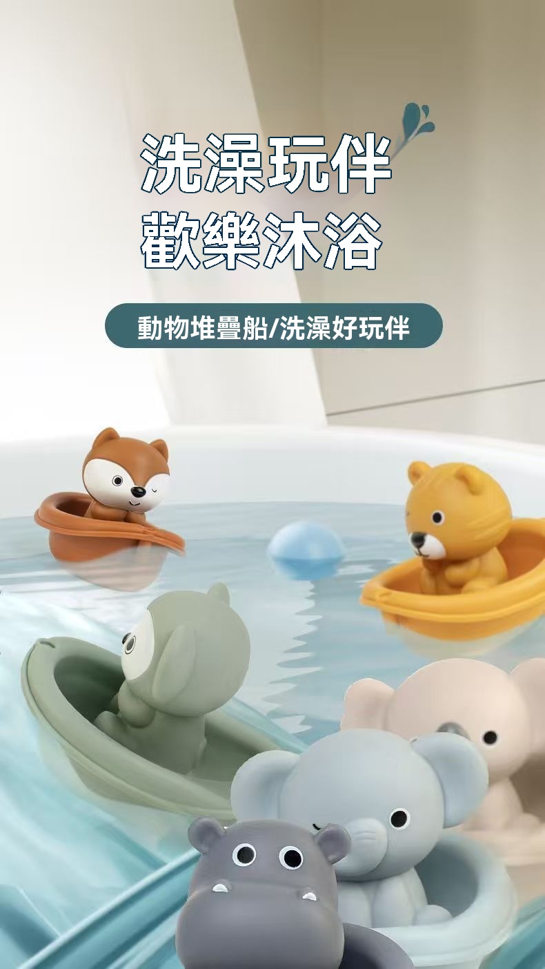 【預購】兒童沐浴可堆疊浮船玩具組每款小船搭配同色系動物 顏色依原廠配置出廠 不以色款要求退換貨A款(小提醒 本商品為【預購】 跨境商品2-4週到貨,不提供退換貨服務..