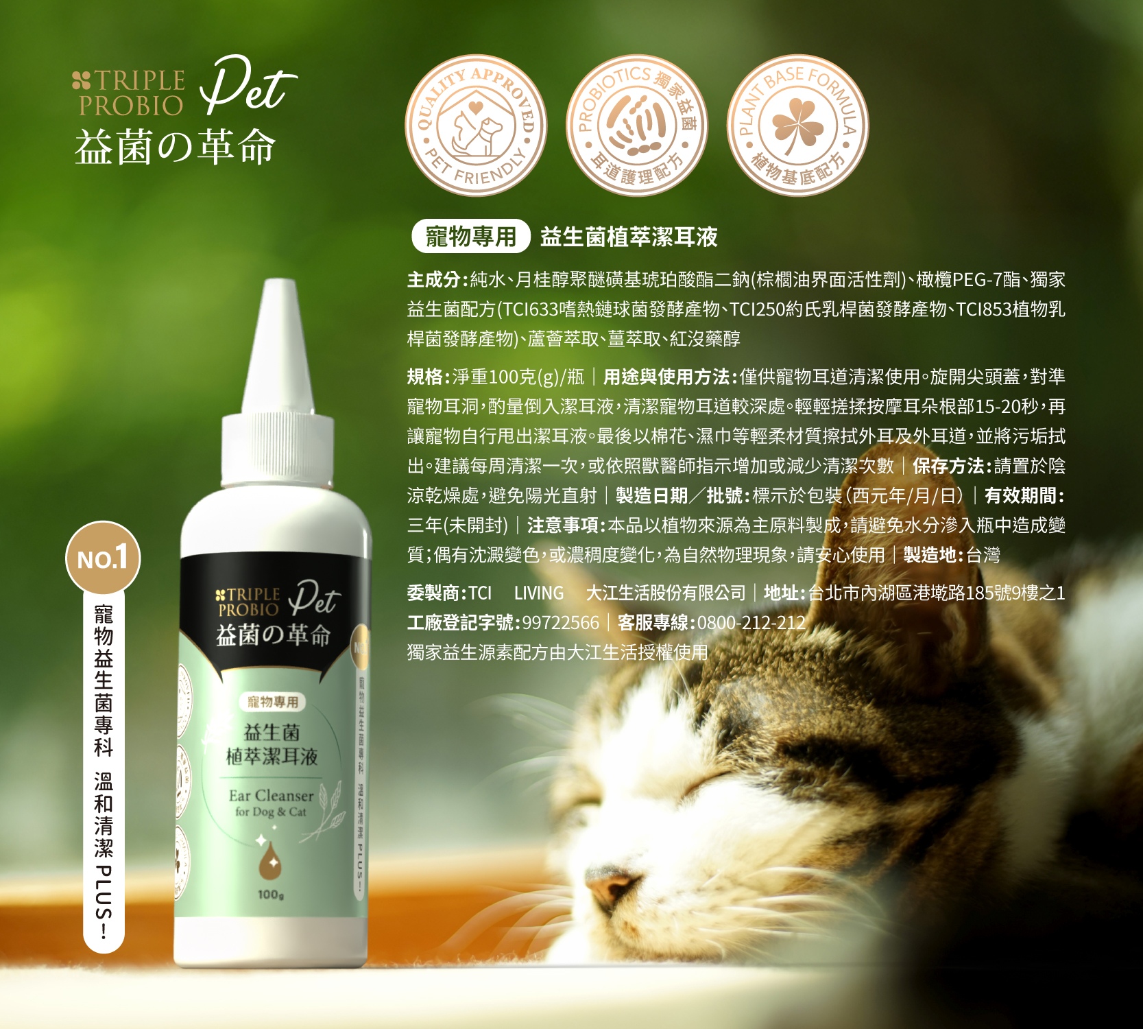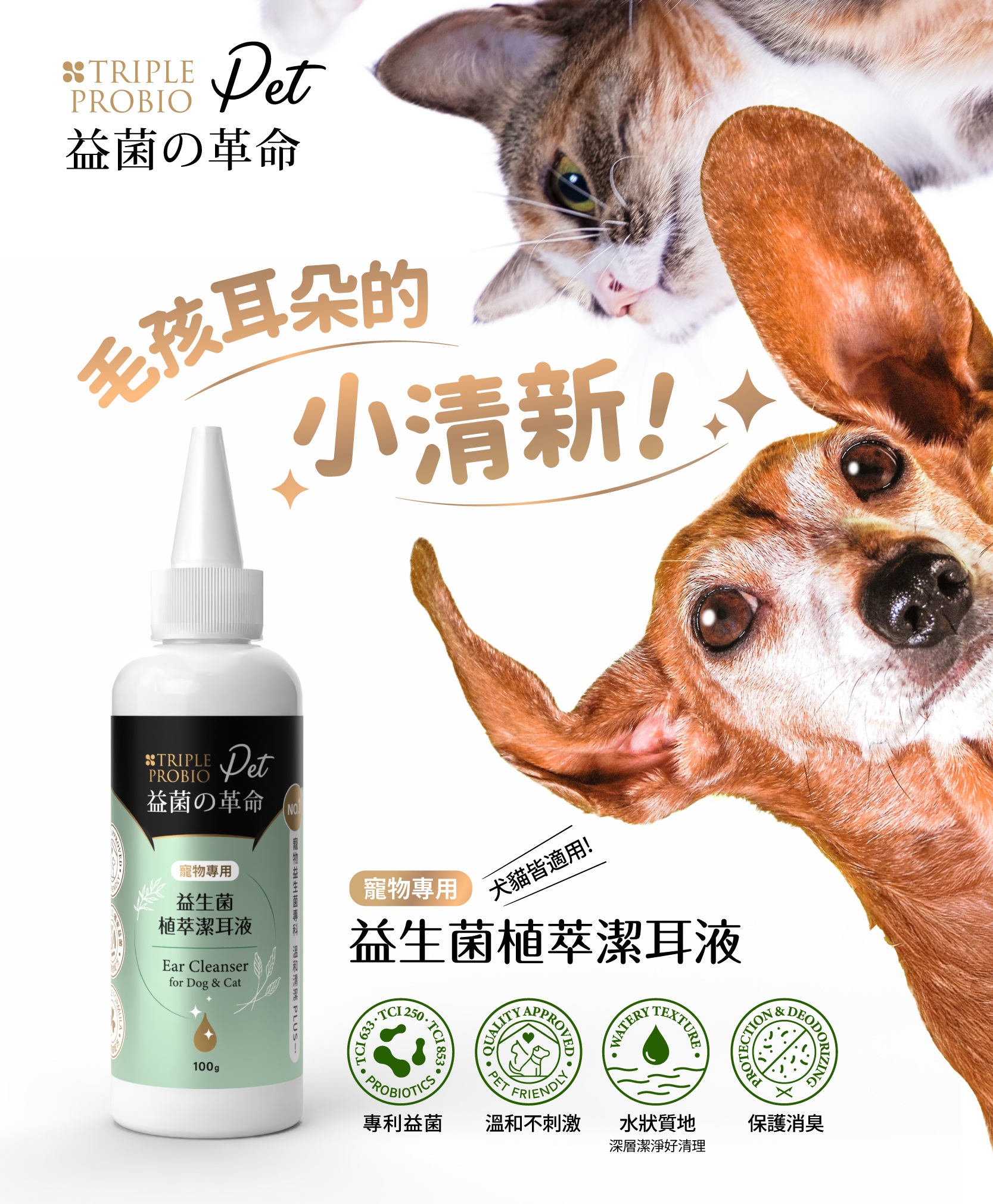 【大江生活】益菌の革命-寵物專用益生菌植萃潔耳液(100ml/瓶)2入組《限宅配》