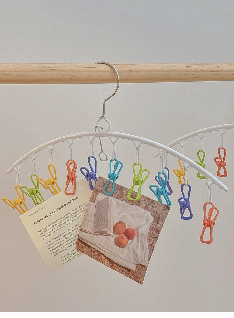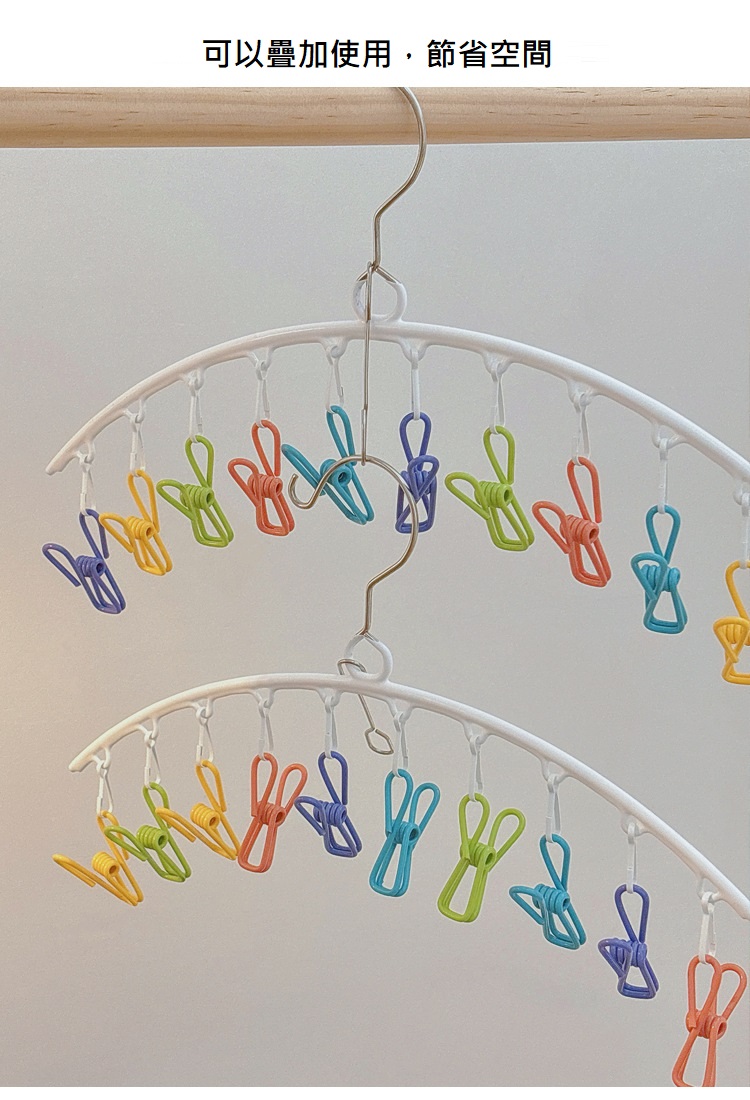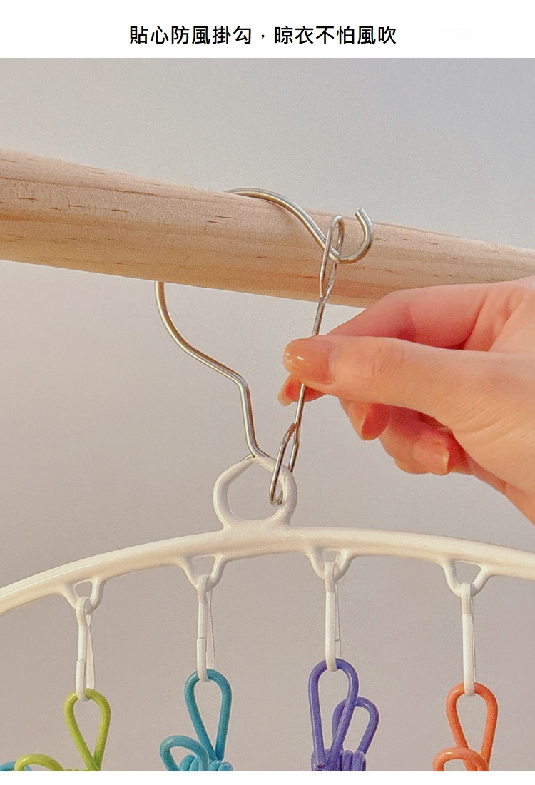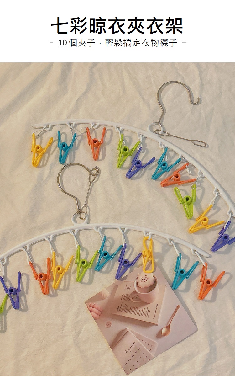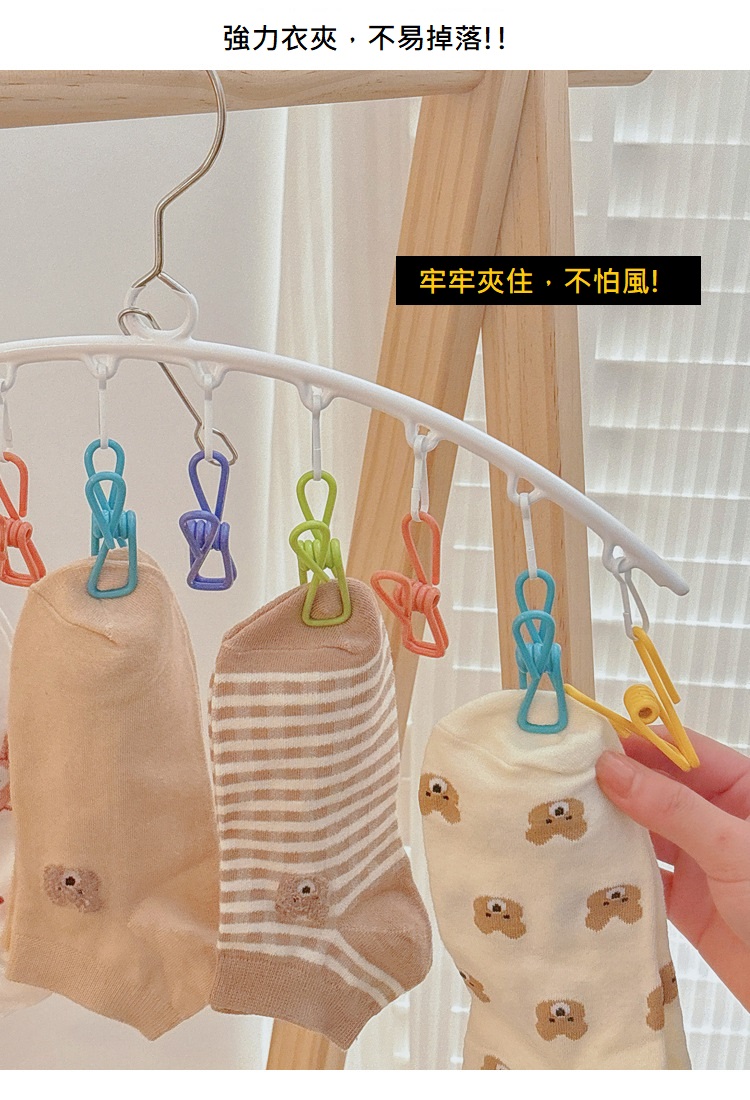 【預購】無痕固定防風夾晾衣架(彩色-10夾)2入組