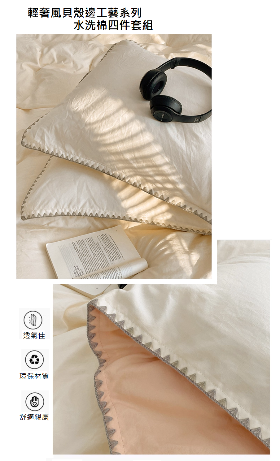 【預購】輕奢貝殼邊水洗棉四件套 (共7款)