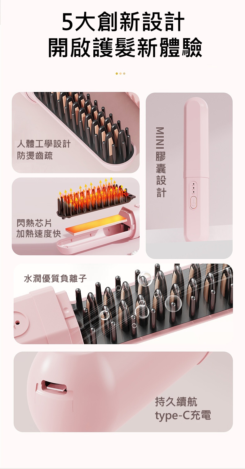 【預購】無線便攜膠囊直髮梳