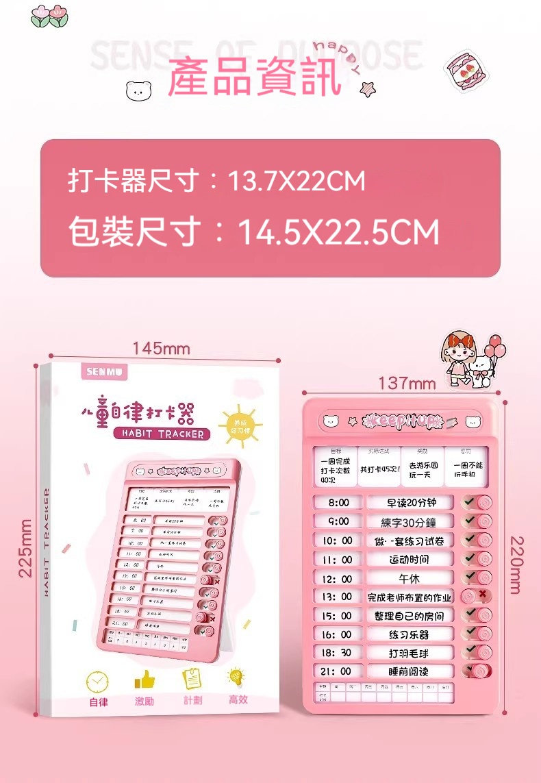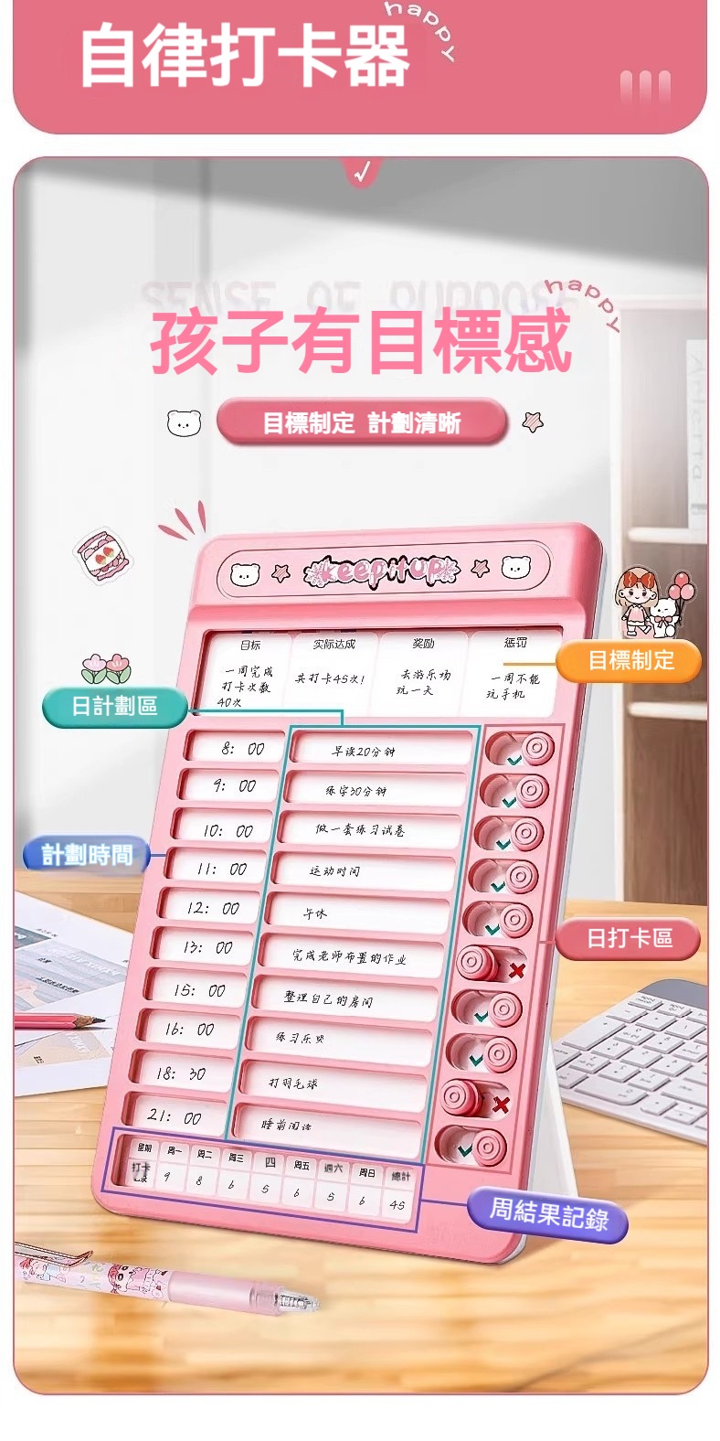 【預購】兒童自律打卡器 (2色可選)小提醒 本商品為【預購】 跨境商品2-4週到貨,不提供退換貨服務..