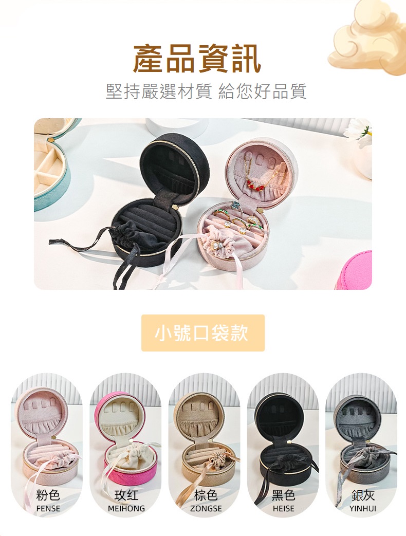 【預購】高級圓形絨布便攜式珠寶收納盒小提醒 本商品為【預購】 跨境商品2-4週到貨,不提供退換貨服務..