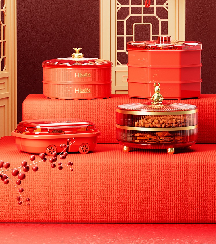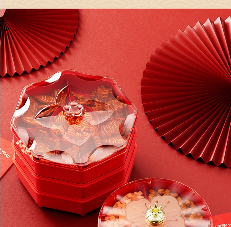 新年紅色帶蓋乾果盒(單層)